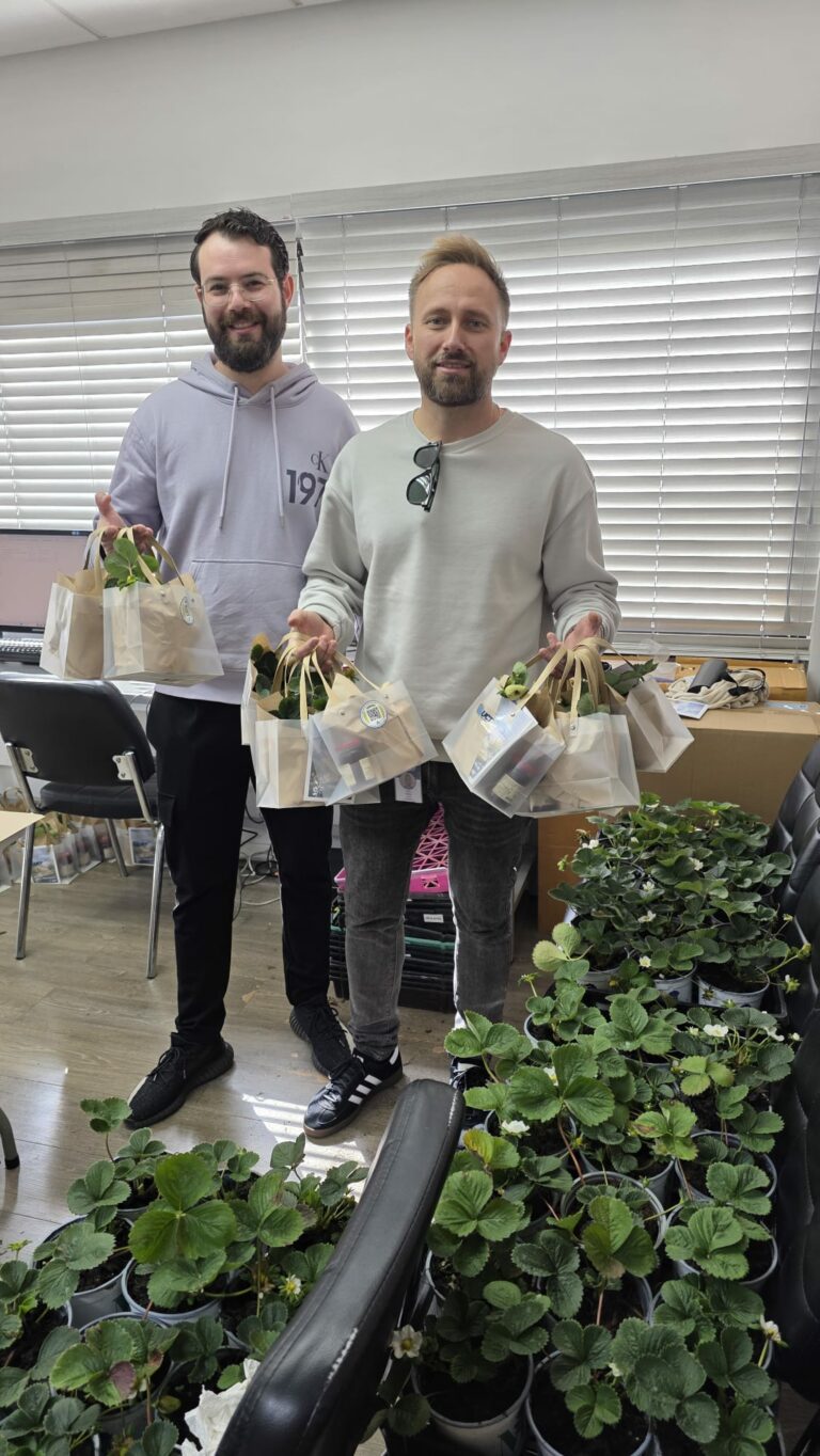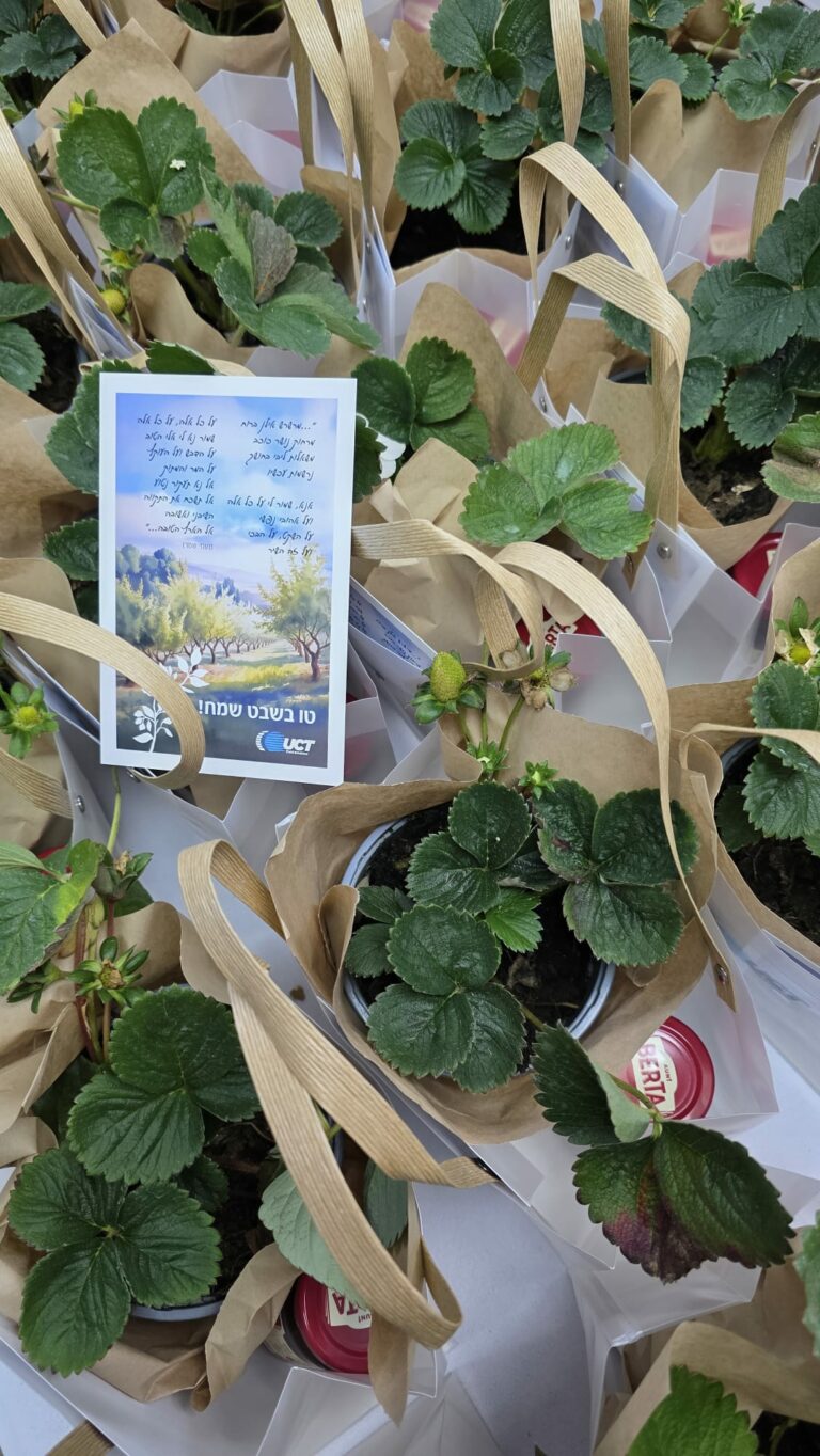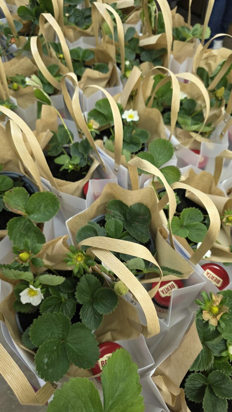 הפתרון: תיק פלסטיק מדליק, ממותג בלוגו, ובתוכו שתיל תות שדה 🍓, ריבת תות מתוקה, וברכה אחת שעושה משהו בלב 🌿